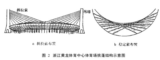 (1)通常由塔柱、拉索、網格結構三部分協調組合而成的雜交空間結構。