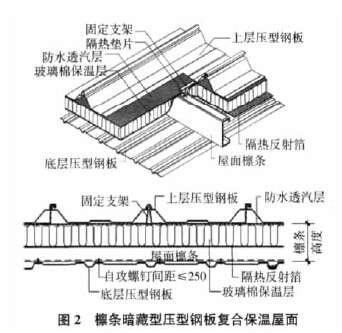 有檁體系——檁條暗藏型壓型鋼板復(fù)合保溫屋面系統(tǒng)(圖 2)