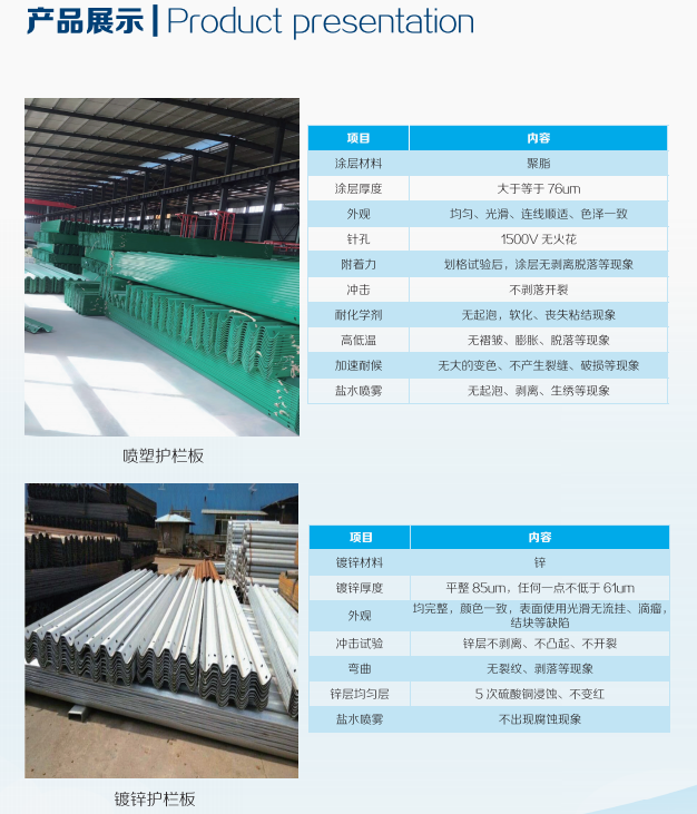 護(hù)欄板,利用土基、立柱、橫梁的變形來(lái)吸收碰撞能量,并迫使失控車(chē)輛改變方向,恢復(fù)到正常的行駛方向,防止車(chē)輛沖出路外,以保護(hù)車(chē)輛和乘客,減少事故造成的損失。
